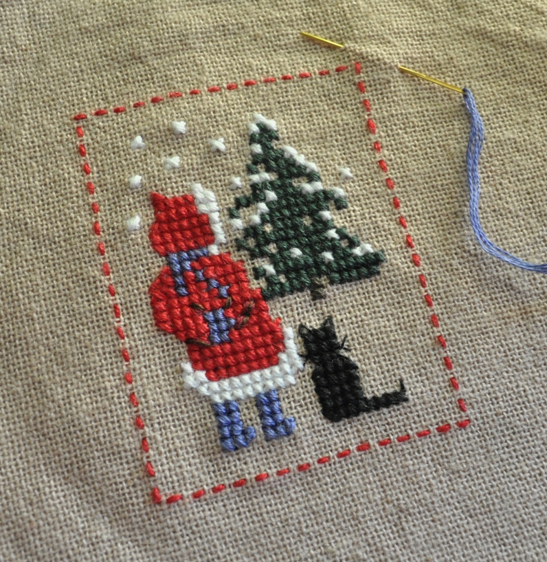I was surprised at how much easier the 25-count Lugana was for me to see. In fact, it was so much easier on my eyes, instead of making stitches over two threads (as the pattern suggested), I decided to make my stitches over one thread.